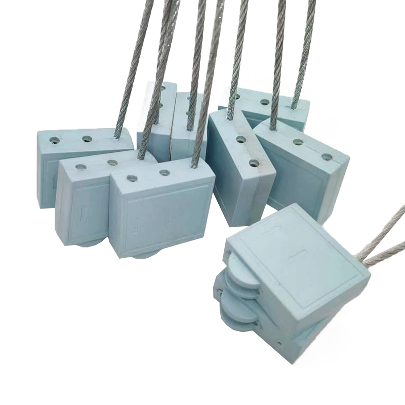 O selo de aço é um material de bloqueio composto por um corpo de aço com revestimento em plástico ABS e fio de aço galvanizado.